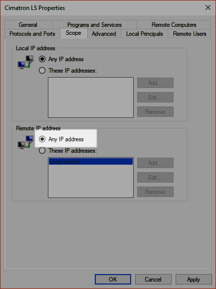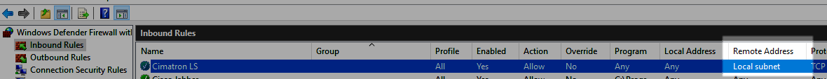 By default, an inbound firewall rule is created on the server called "Cimatron LS". Some customers may need to edit this rule if the clients are not on the same subnet as the server.
