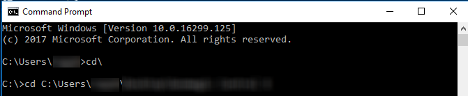 2) Type cd\ and press enter, then cd [File path to the installer setup.exe], and press enter again.