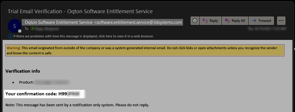 6) Locate the code in the verification email. The email should be sent from software.entitlement.service@3dsystems.com and may end up in a spam folder.
