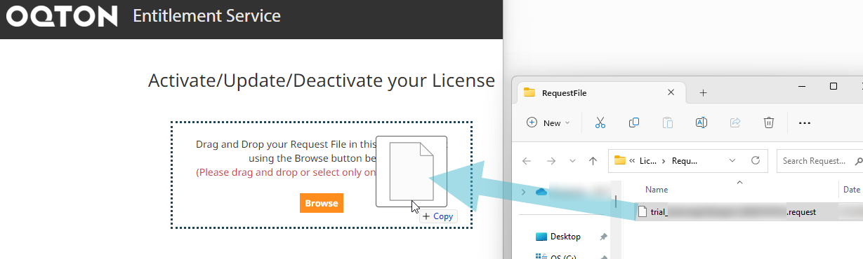 9a) Copy the file to a PC with internet access and navigate to the offline activation portal: https://activation.oqton.com/offline