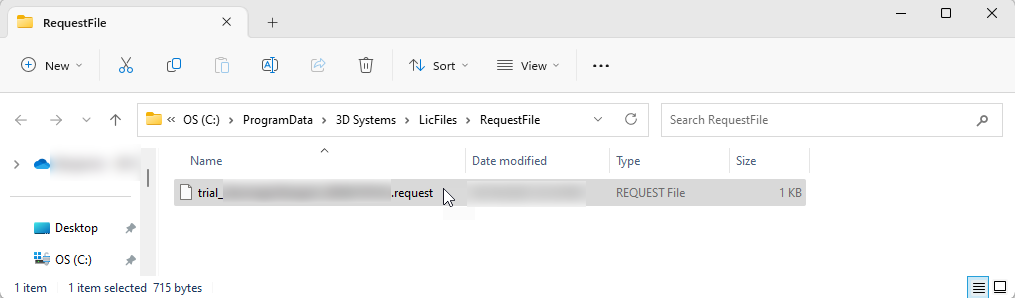 8a) Locate the trial request file here: C:\ProgramData\3D Systems\LicFiles\RequestFile